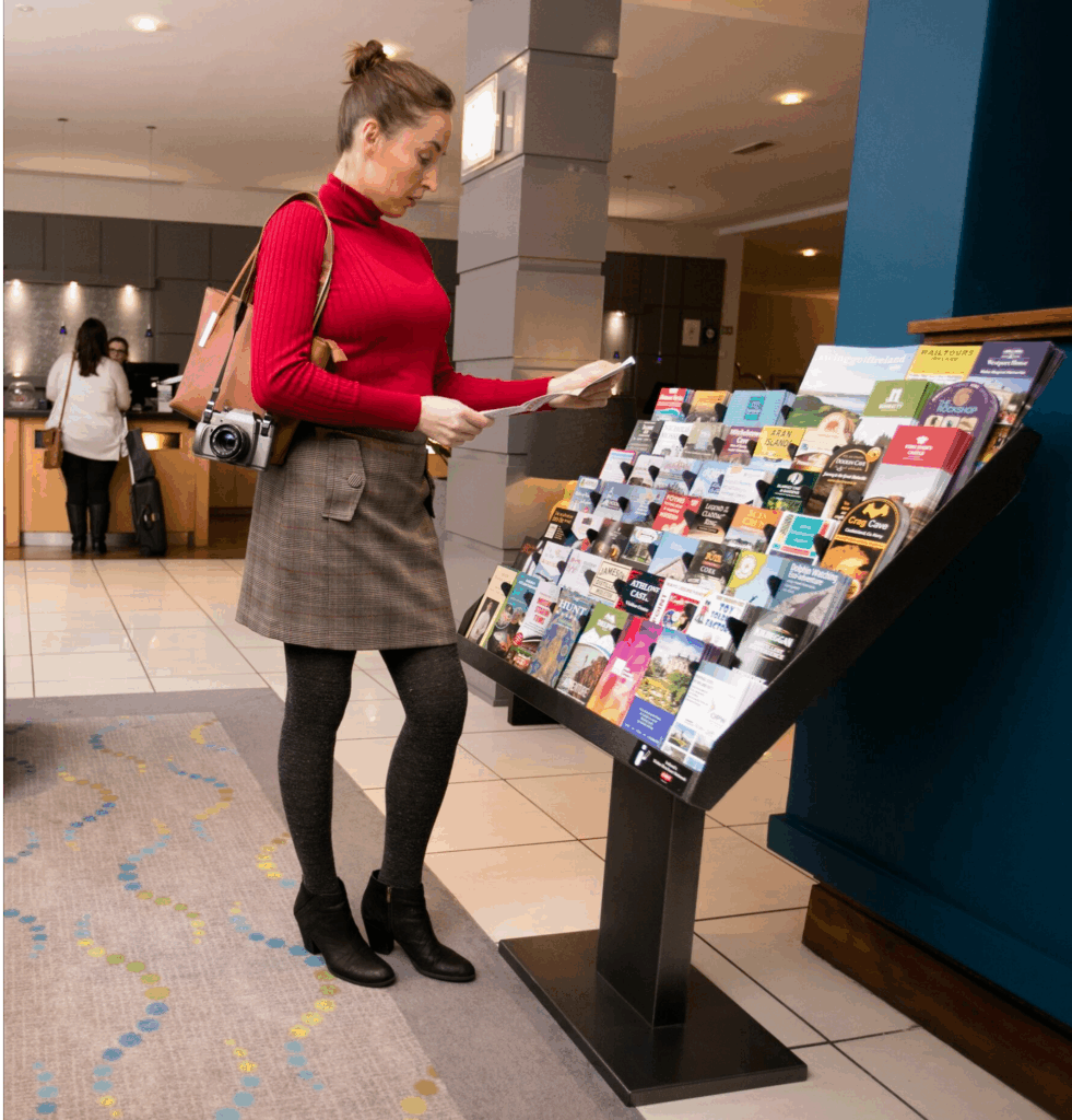 Every day, visitors arrive in new places with open minds and loose plans. They haven’t decided yet what they’ll see or where they’ll go next. That’s when they encounter a brochure display—in a hotel lobby, a visitor center, a visitor attraction, a train station, a motorway stop, or an airport. And they look. They reach. They choose.